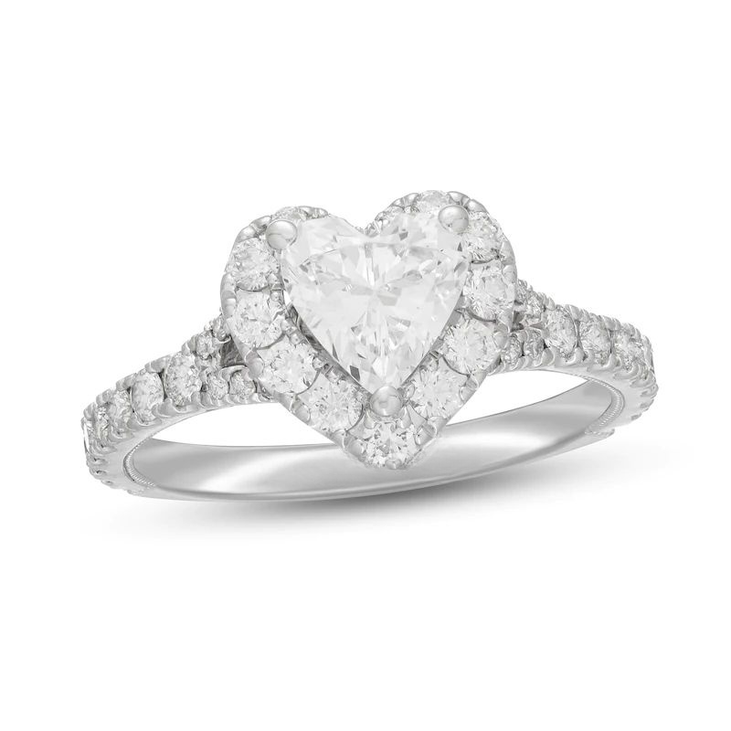 Diamond Engagement Ring 1-3/8 ct tw Heart & Round-Cut 14K White Gold